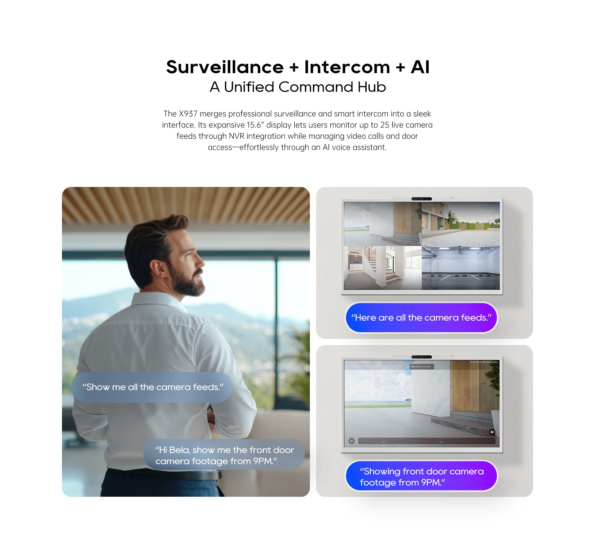 Akuvox X937A 15.6″ 1080P FHD Surveillance + Video Intercom Touchscreen AI Monitor – Android 14 OS – Built-in WiFi – Voice Assistant – HDMI Input – Built-in 5MP Camera