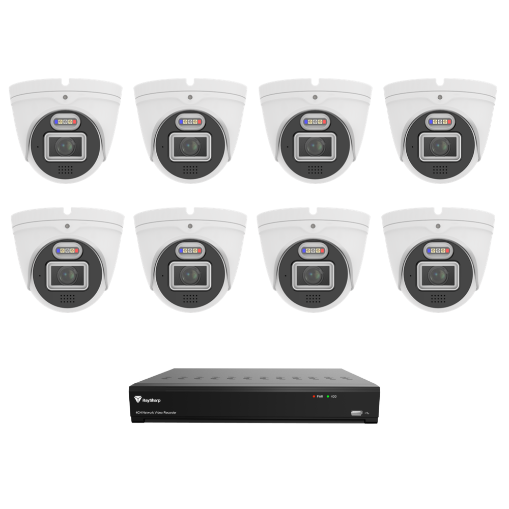 Raysharp RS8MPIPCCTVKIT5 4K 8MP IP CCTV Kit # 5 with 1 * RS-N2316GR-EHL-EP 16-CH NVR (without HDD) + 8 * RS-CH340N4MIG-HALTF-LFW28PW 4K 8MP All-in-One IP Turret Cameras