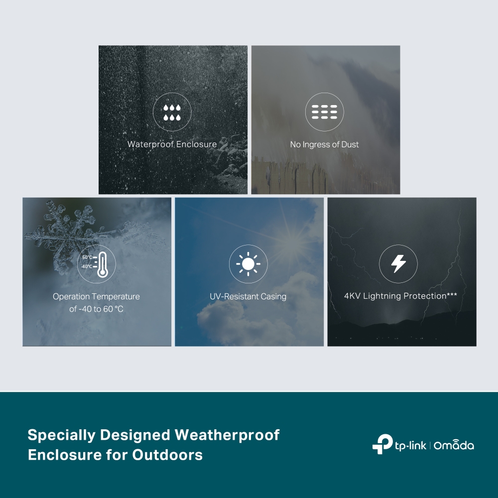 - Outdoor Weatherproof: IP55 waterproof, dustproof, and UV-resistant enclosure. Operation temperatures of -40 to 60 °C and 4KV lightning protection further ensure stable operation against harsh outdoor conditions.