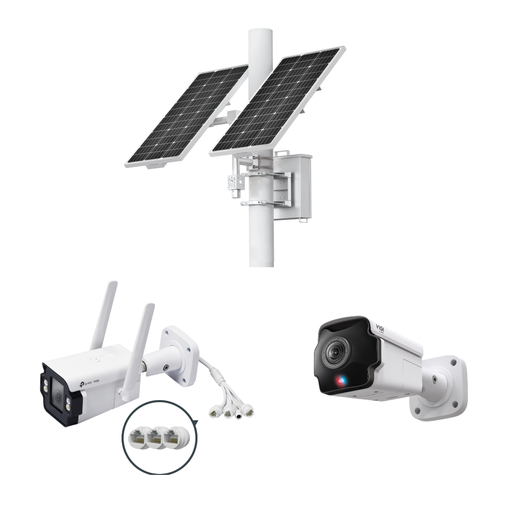 TP-Link VIGI 4G Solar Master 180 Kit – Includes 1 * SP18090 Solar Set + 1 * S345-4G4MP LTE All-In-One Bullet Camera + 1 * S385PI 4K 8MP 180° All-In-One Bullet Camera – Smart IOT MPPT Controller Included – Weatherproof – Remote Management*