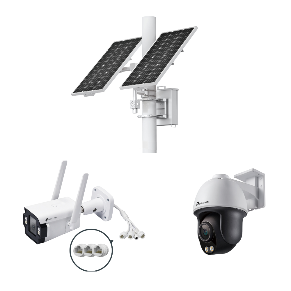 TP-Link VIGI 4G Solar Master Kit – Includes 1 * SP18090 Solar Set + 1 * S345-4G 4MP LTE All-In-One Bullet Camera + 1 * C540S Ultra-Low-Light Full-Colour 4MP Auto-Tracking PT Camera – Smart IOT MPPT Controller Included – Weatherproof – Remote Management*