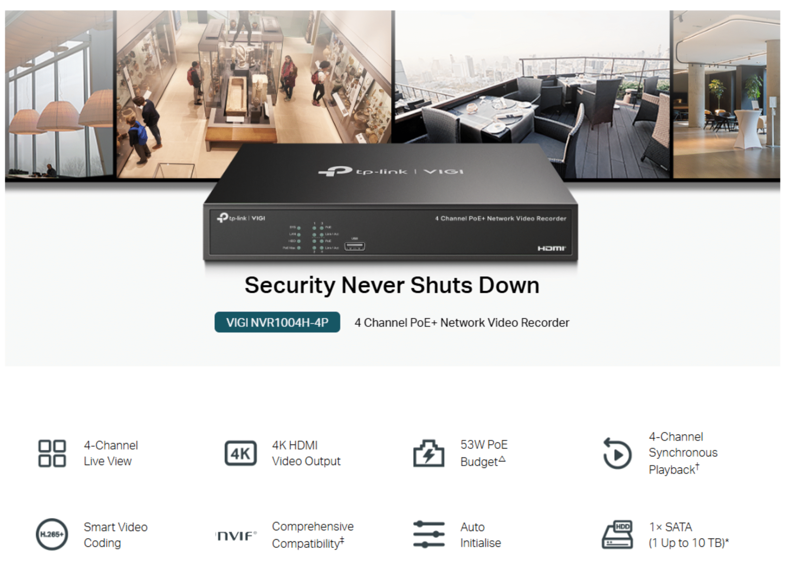 TP-Link VIGI NVR1004H-4P 4K Mini 1U 4-Channel 4* PoE NVR – Without HDD